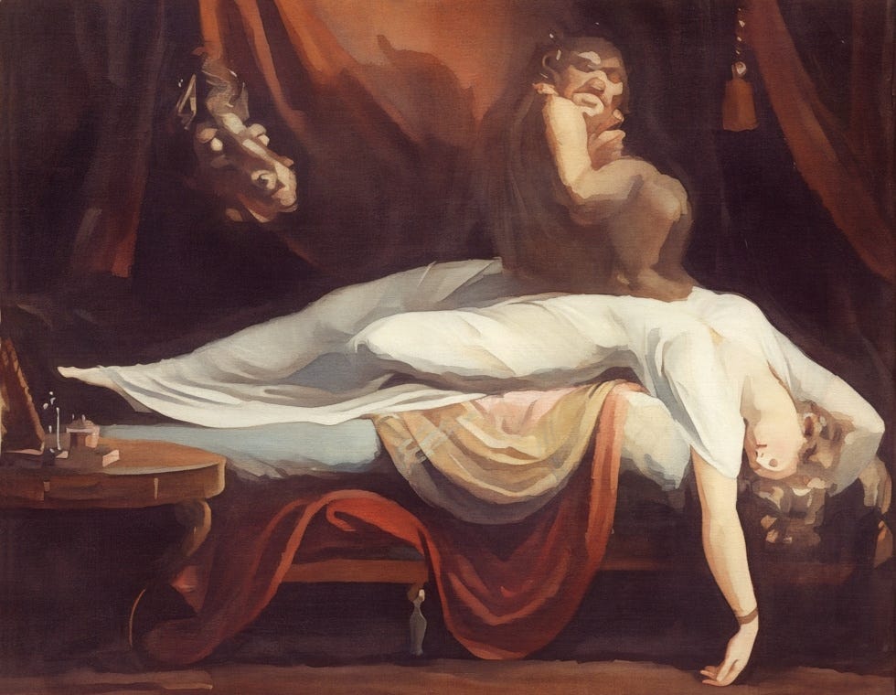 Like the painting by Fuseli I used on this piece. A nightmare, he called it. He’d been painting for years but no one paid attention until that one. People looked at it and understood instantly and I still remember the first time AI made me feel that way.